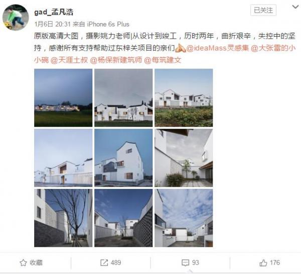 這是一組農(nóng)村建筑組圖,孟凡浩寫道,“從設(shè)計(jì)到竣工,歷時(shí)兩年,曲折艱辛,失控中的堅(jiān)持,感謝所有支持幫助過東梓關(guān)項(xiàng)目的親們。”