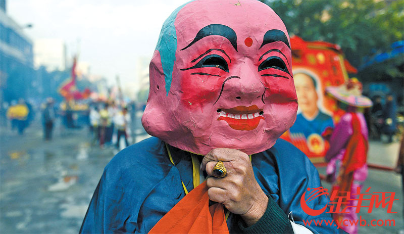 儺戲,是湛江市東嶺村的招牌,一般五人表演,進(jìn)入各家各戶驅(qū)邪祈福。儺,始于周朝,可能是現(xiàn)存最古老的禮制遺存,宋代之后在宮廷消失,現(xiàn)在廣東江西貴州等省民間尚存記者 鄧勃攝