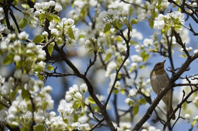 桃樹、杏樹、梨樹,你不讓我,我不讓你,都開滿了花趕趟兒。紅的像火,粉的像霞,白的像雪?;ɡ飵е鹞秲海婚]了眼,樹上仿佛已經(jīng)滿是桃兒、杏兒、梨兒。花下成千成百的蜜蜂嗡嗡地鬧著,大小的蝴蝶飛來飛去。野花遍地是:雜樣兒,有名字的,沒名字的,散在草叢里,像眼睛,像星星,還眨呀眨的。