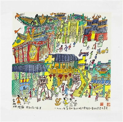 張仃的水彩畫作品城隍廟。