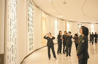 記者了解到,此次展覽從全軍遴選20位書法骨干,特邀36位著名軍旅書法家,嚴格按照“定人員、定內(nèi)容、定尺幅、定書體”的標準,潛心創(chuàng)作打磨,力求以形神兼?zhèn)?、文質(zhì)兼美的優(yōu)秀作品,給觀眾以強烈的藝術(shù)感染、深刻的思想啟迪和豐厚的精神滋養(yǎng)。