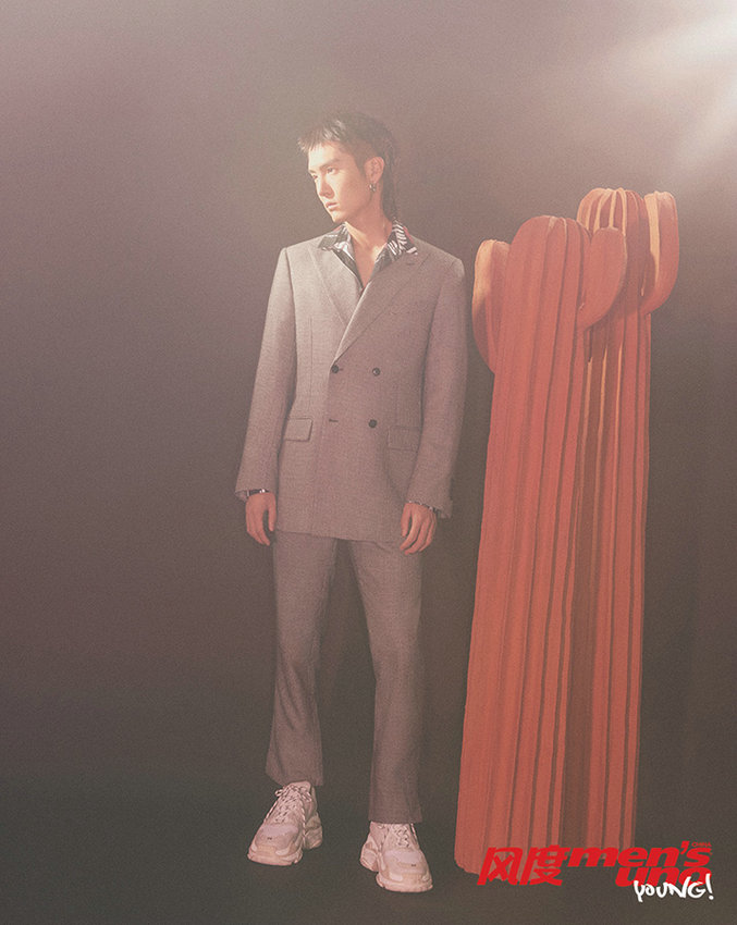 ??? 近日,演員盛一倫登上某雜志12月刊封面, 顛覆了過往風(fēng)格拍攝了一組光影和空間相互交錯的超現(xiàn)實風(fēng)格寫真;莫西干式長發(fā)造型搭配日系復(fù)古懷舊西裝,光影渲染下的盛一倫棱角分明,整組圖片充滿年代感。