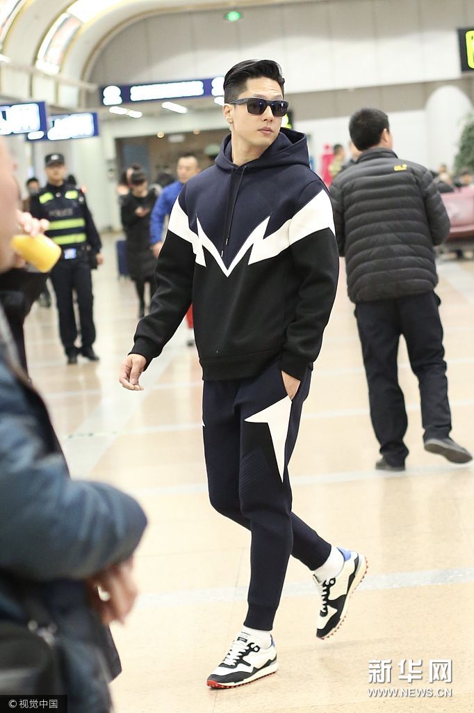 凌瀟肅迎運動套裝低調(diào)現(xiàn)身 戴墨鏡型男范
