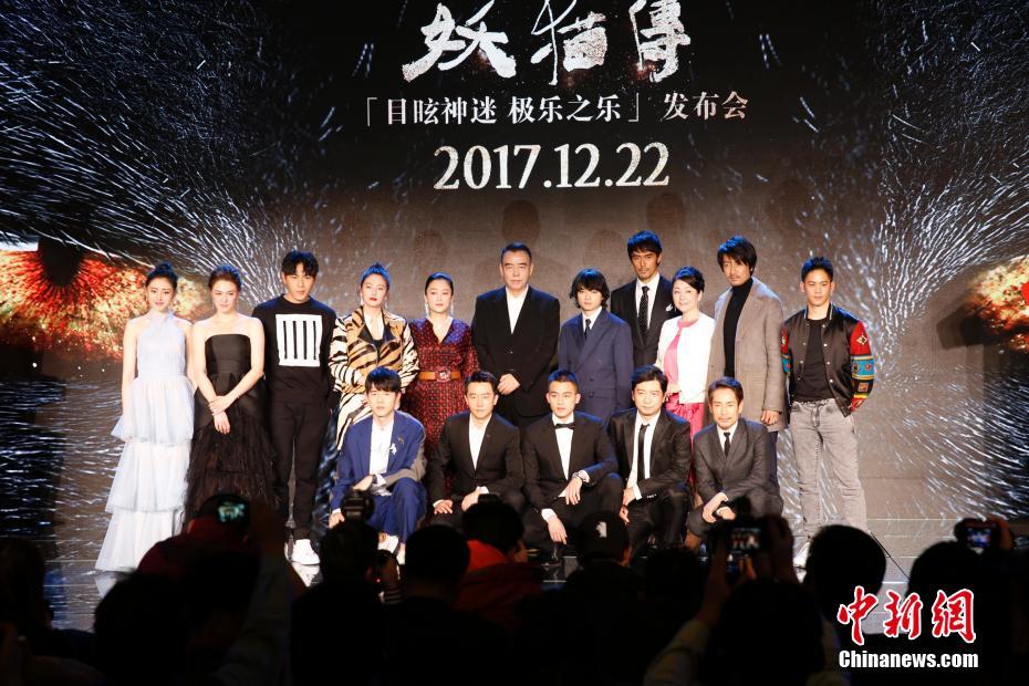 12月17日,由陳凱歌導(dǎo)演的賀歲奇幻題材電影《妖貓傳》在北京舉行全球首映發(fā)布會(huì),導(dǎo)演陳凱歌,制片人陳紅攜主演黃軒、染谷將太、張雨綺、秦昊、張榕容、張魯一、劉昊然、阿部寬、松坂慶子等亮相。影片改編自日本作家夢(mèng)枕貘的魔幻系列小說(shuō)《沙門(mén)空?!?,將于22日起在中國(guó)內(nèi)地上映。圖為眾主創(chuàng)合影。