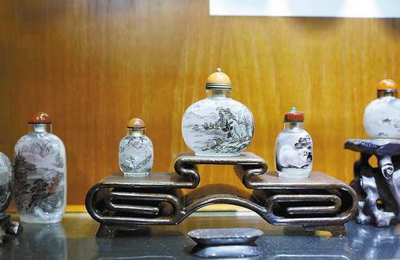 據(jù)楊藝介紹,明末清初,鼻煙作為貢品開始傳入我國,這些進貢的鼻煙用玻璃瓶盛裝,以防止其味道散失,并以瓶的大小標(biāo)示鼻煙計量。王士禎在《晉祖筆記》中記載:“鼻煙以玻璃為瓶貯之。瓶之形象種種不一,顏色具紅黃紫白黑綠諸色,白如水晶,紅如火齊,極可愛玩,以象齒為匙,就象鼻之,遠納于瓶?!彼耐怀鲐暙I就在于,把紙上畫和寫的藝術(shù),經(jīng)過工具、操作等多方面的革新,改在為玻璃或水晶煙壺內(nèi)壁反面上作畫,其難、其奇,真可謂巧奪天工。內(nèi)畫煙壺的創(chuàng)作在光緒年間達到鼎盛。收藏界認為它集中國工藝美術(shù)之大成的袖珍藝術(shù),是詩書畫并茂的藝術(shù)精品。