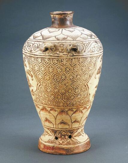 深圳出土的元褐彩牡丹紋雙系小口陶瓶和東漢“九九乘法口訣”刻文陶磚。