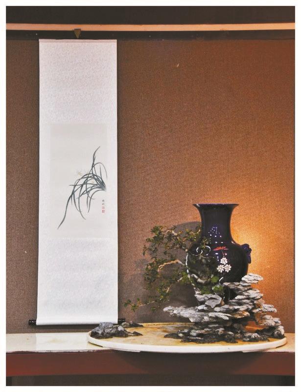 “雙粹”會展特點(diǎn)是景畫交融,典雅清心的工筆國畫,配上美輪美奐的花瓶盆景,賞心悅目,讓觀者流連忘返。