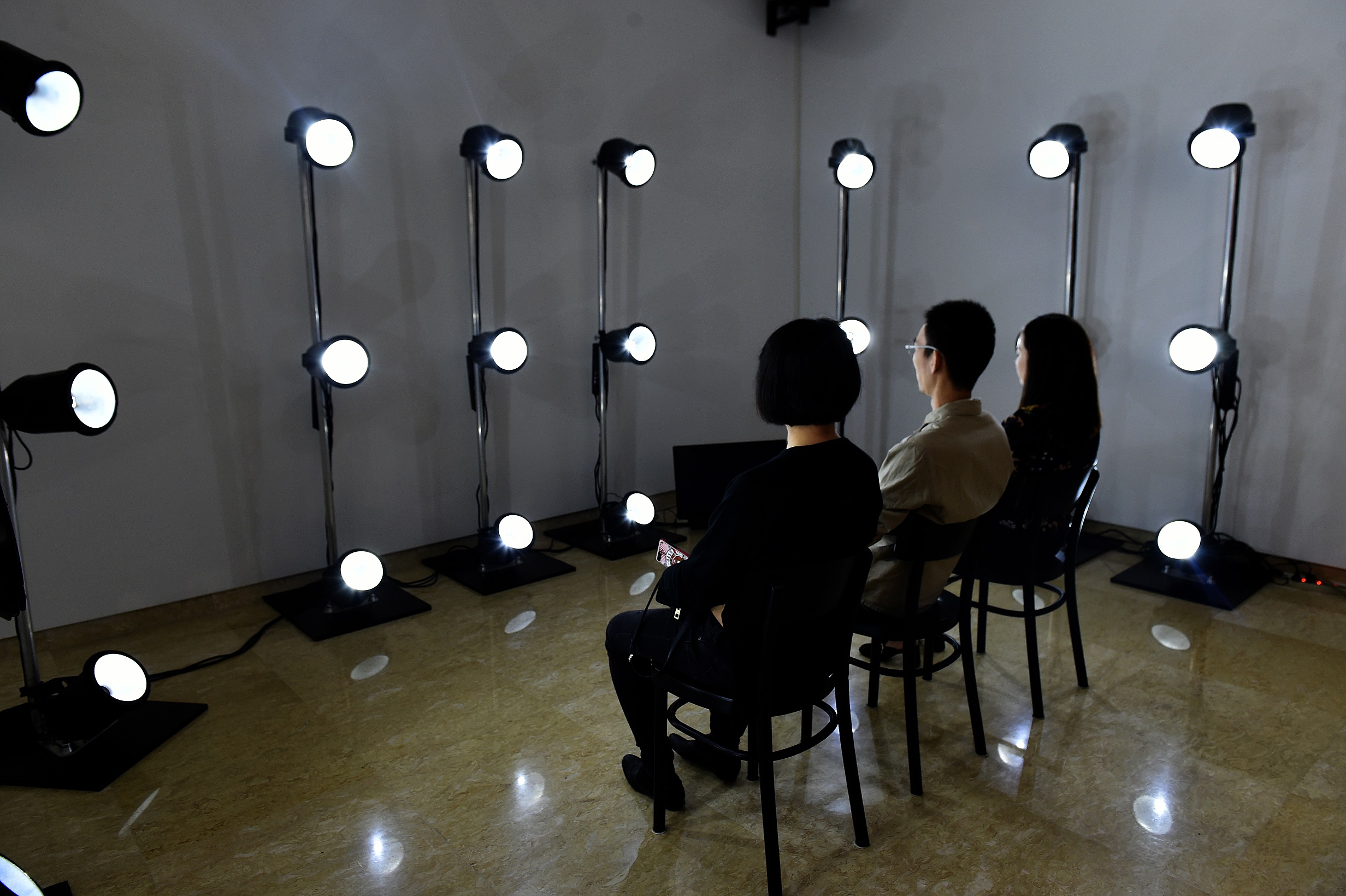 很多觀(guān)眾排隊(duì)體驗(yàn)丹麥館的《斷電》,它由27根頻閃觀(guān)測(cè)器燈圍著三張座椅。觀(guān)眾坐下,閉上眼睛……通過(guò)預(yù)設(shè)好的燈光順序,閉上眼睛眼前將會(huì)呈現(xiàn)幾乎會(huì)引起幻覺(jué)的燈光圖案。同音樂(lè)一起,制造了一場(chǎng)浸入式的感官體驗(yàn)。通過(guò)調(diào)動(dòng)眼球與大腦的敏感性,看它們?nèi)绾萎a(chǎn)生視覺(jué)“斷電”。