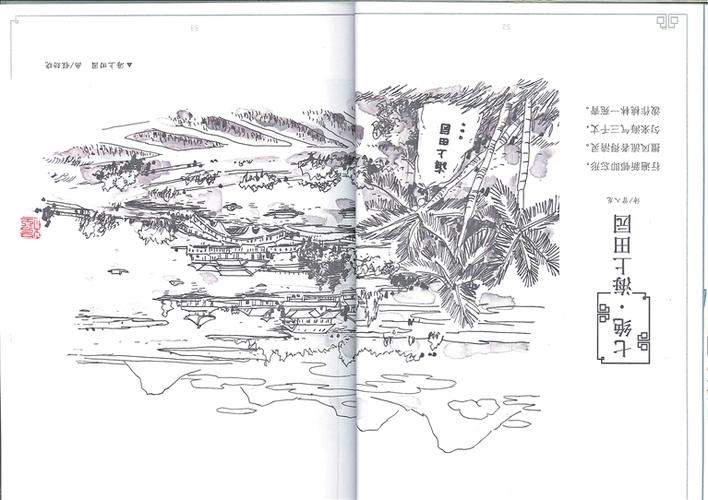 行遍新邨即忘形, 擅風(fēng)流者得清靈。 勻來海氣三千丈, 潑作桃林一苑青。 海上田園 詩/曾入龍 畫/程勁曉