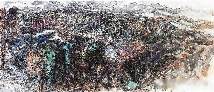 本次畫展題為“妙合化權(quán)”,出自宋代黃修復《益州名畫錄》:“大凡畫藝,應物象形,其天機迥高,思與神合,創(chuàng)意立體,妙合化權(quán)。”意即神思與物象相協(xié)調(diào),主觀創(chuàng)造與自然物象的妙合無礙,便能筆顯通神,創(chuàng)意無限,這也是中國畫家們追求的至高境界。孫克說,中國畫講究“外師造化,中得心源”?!皫煼ㄗ匀弧笔钱嫾异`感源泉,也促使中國畫藝術(shù)源遠流長,無窮無盡。李照東的新作墨彩繽紛,視覺張力恣肆磅礴,而畫面之中,溪谷幽深,流水潺湲,屋宇聚散,情趣盎然,足見畫家深得“造境”之妙。