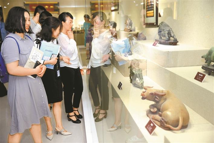 5月16日下午,“孺子?!ど钲诨辍^藏牛藝術(shù)品陳列展”在市檔案館開幕。展覽展出了市檔案館珍藏的1400多件以“?!睘橹黝}的雕塑、刺繡、書法、繪畫等藝術(shù)品中的300件。這些展品均系深圳市委原書記厲有為無償捐贈。