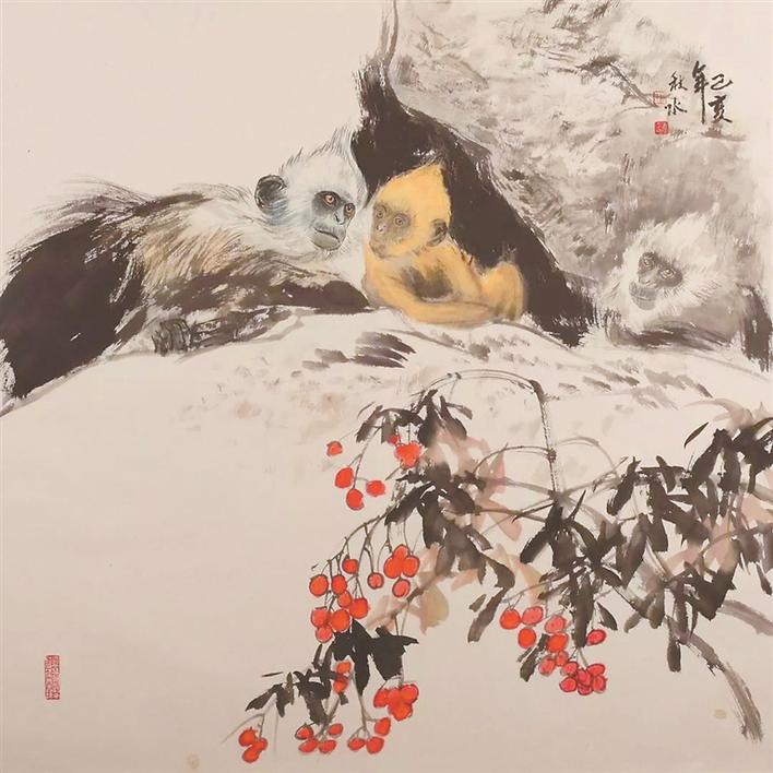 一場別開生面的以白頭葉猴為主題的畫展日前在前海樸石藝術(shù)館展出。