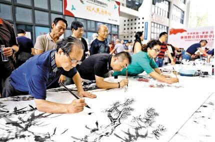 寶安日?qǐng)?bào)2019年9月19日訊 9月18日下午,以“中華民族一家親,同心共筑中國(guó)夢(mèng)——各族群眾共賀新中國(guó)成立70周年”為主題的書(shū)畫藝術(shù)筆會(huì)在龍華文化藝術(shù)中心舉行,80多位書(shū)畫名家現(xiàn)場(chǎng)揮毫,盡展中華民族文化藝術(shù)瑰寶魅力。