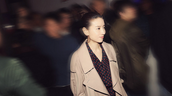 李沁高領(lǐng)毛衣 戴茶色墨鏡溫暖時(shí)尚