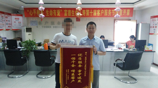 6月27日富德生命人壽鐵嶺中支迎來了一位特殊的客人,李先生的愛人雙手捧著“優(yōu)質服務、雪中送炭,一諾千金、情系客戶” 的錦旗,非常激動的說:“多虧有富德生命保險,使我們本來不富裕的家庭,在有難的時候,讓我們的生活有了保障,讓我愛人的后續(xù)治療有了保障,還是保險好?!?/p>