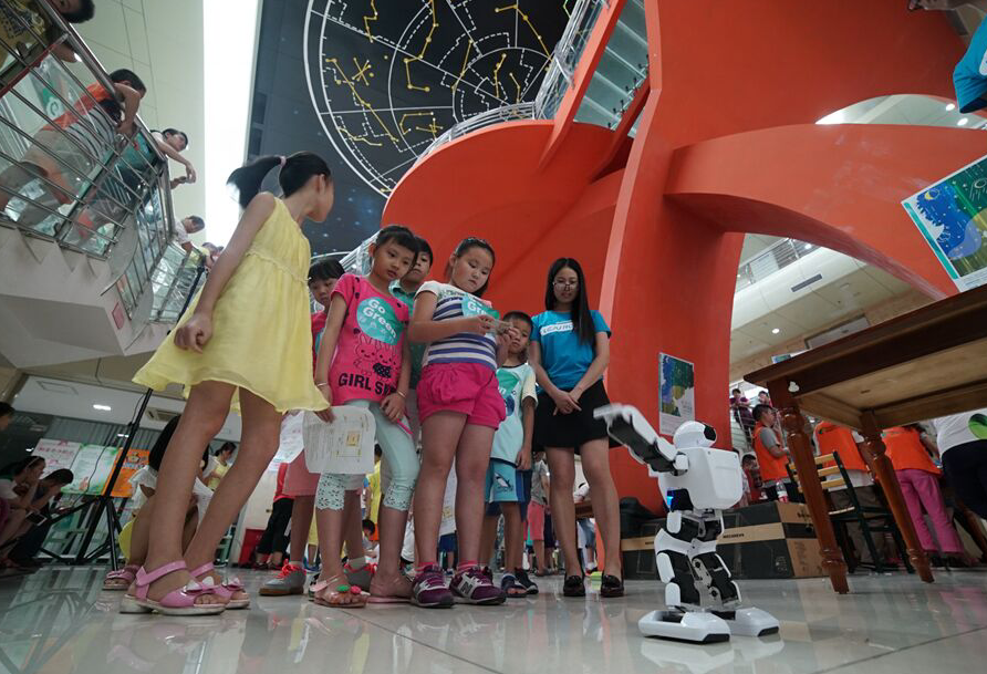 在春晚上舞臺(tái)上跳舞的機(jī)器人,相信大家依然記憶猶新。而在當(dāng)天的活動(dòng)中,也有兩臺(tái)跳舞機(jī)器人也受到了小朋友們的追捧。金雞獨(dú)立、俯臥撐、翻筋斗,各種高難度的動(dòng)作統(tǒng)統(tǒng)難不倒這兩臺(tái)動(dòng)作靈活的機(jī)器人。據(jù)了解,這兩臺(tái)機(jī)器人除了能自動(dòng)跳舞外,還能通過(guò)遙控器,在小朋友的操作下做出各種高難度動(dòng)作。樂聚(深圳)機(jī)器人技術(shù)有限公司的工作人員表示,通過(guò)手動(dòng)操控機(jī)器人不僅鍛煉了孩子的想象力和動(dòng)手能力,啟迪與激發(fā)了他們的科技創(chuàng)新意識(shí)和興趣,還讓孩子們體驗(yàn)了科技的魅力。
