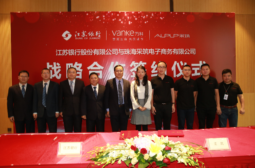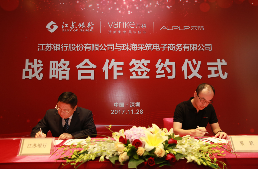 11月28日,采筑電商平臺(tái)發(fā)布會(huì)暨與江蘇銀行戰(zhàn)略合作協(xié)議簽約儀式在前海萬(wàn)科國(guó)際會(huì)議中心成功舉行。萬(wàn)科集團(tuán)副總裁王蘊(yùn)女士和江蘇銀行運(yùn)營(yíng)總監(jiān)趙輝先生受邀出席儀式并致辭,江蘇銀行行長(zhǎng)助理兼深圳分行行長(zhǎng)李敏與采筑電商平臺(tái)總經(jīng)理都軍代表雙方簽署戰(zhàn)略合作協(xié)議??傂泄緲I(yè)務(wù)部周愛(ài)國(guó)總經(jīng)理、深圳分行張慶光副行長(zhǎng)等一行出席發(fā)布會(huì)暨簽約儀式。