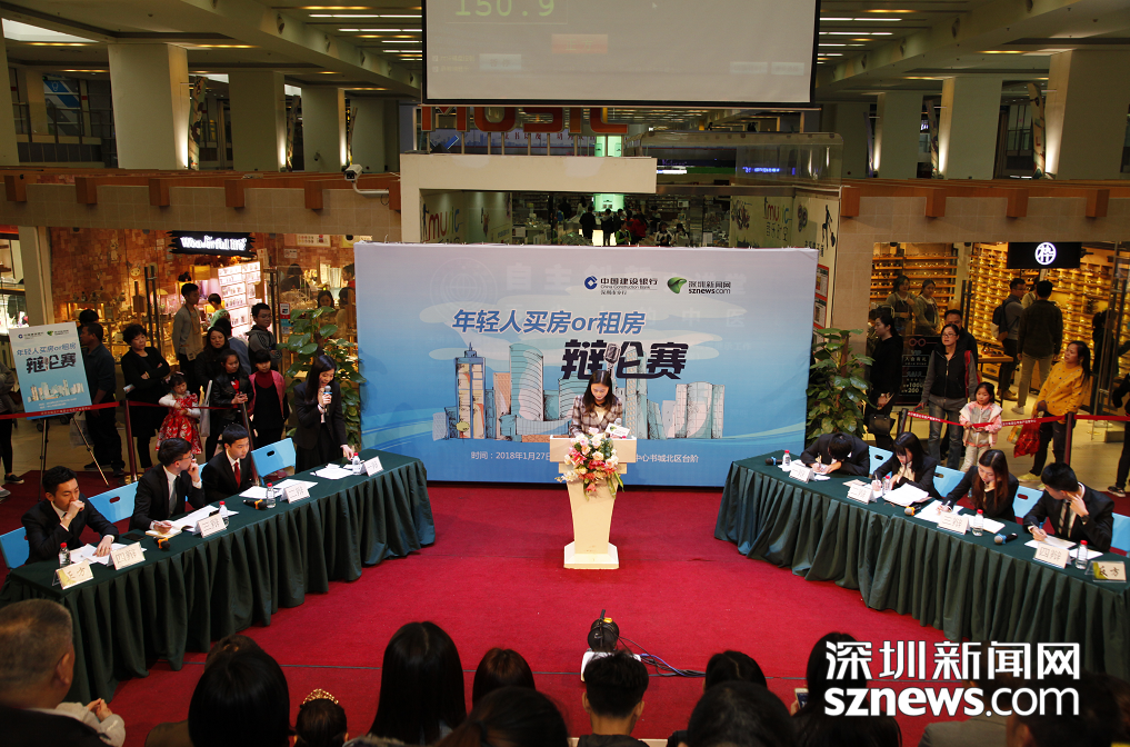 深圳新聞網(wǎng)訊 房是老百姓安身立命之所,是溫暖的港灣。買房、租房正是大家茶余飯后最關(guān)心的話題。隨著“租售同權(quán)”概念的提出,在住房制度改革、大力推進住房長效機制建設(shè)的背景下年輕人到底是該窮其一生做“房奴”買房呢?還是追求生活品質(zhì)走進租房新時代呢?為了聽到關(guān)于這個話題的更多聲音,了解更多人的看法,1月27日下午,由深圳新聞網(wǎng)聯(lián)合中國建設(shè)銀行深圳市分行主辦的《年輕人買房VS租房》辯論賽在中心書城北臺階激情開賽。