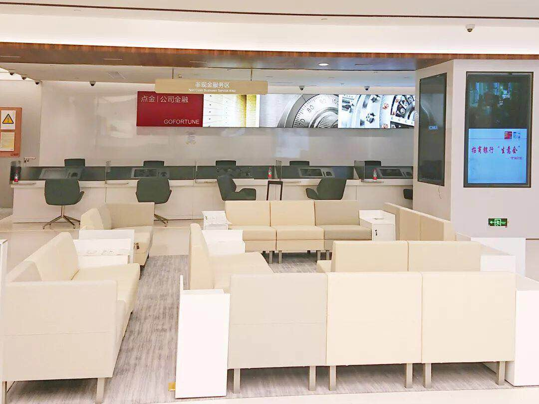 招商銀行3.0網(wǎng)點(diǎn)圍繞“科技+生活”的理念建設(shè)。走近網(wǎng)點(diǎn),門楣設(shè)計(jì)運(yùn)用點(diǎn)陣創(chuàng)意,寓意著招行擁抱金融科技的理念。