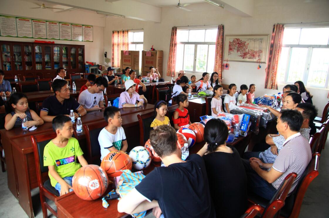 隨后,在村主任的帶領(lǐng)下,大家來到了洋頭小學(xué),參觀了小學(xué)的教室、操場等教學(xué)設(shè)施,與校領(lǐng)導(dǎo)及部分學(xué)生進(jìn)行了交流,并向?qū)W校捐贈了籃球、足球、排球、跳繩、羽毛球、乒乓球拍、拳靶、拳套等體育教學(xué)用品。這些體育用品受到師生們的熱烈歡迎,一些好奇的同學(xué)還當(dāng)場穿戴上嶄新的拳擊手套為大家“表演”了一番。學(xué)校活動結(jié)束后,大家又參觀了該行扶貧生產(chǎn)種植基地——柚子園,園內(nèi)柚子碩果累累、長勢喜人,大家紛紛拍照留念。