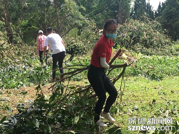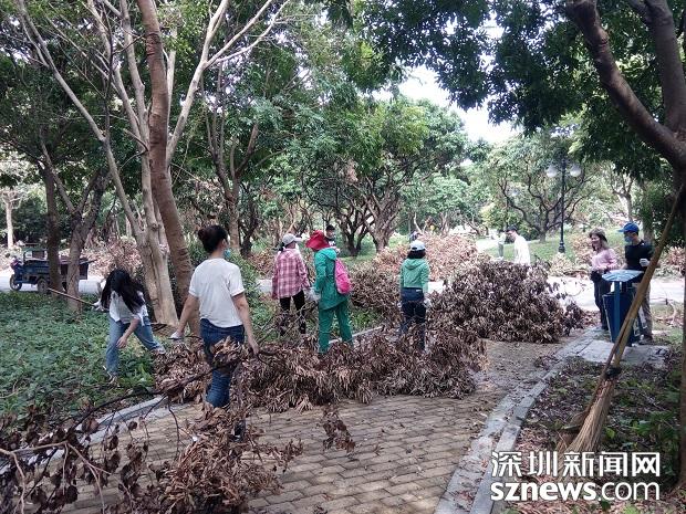 9月22日,臺(tái)風(fēng)過(guò)后小長(zhǎng)假的第一天,深圳農(nóng)村商業(yè)銀行積極響應(yīng)深圳市城管局和人大代表“人人行動(dòng),一起清潔美麗家園”的倡議,在全行發(fā)起了“愛心清理中心公園,還深圳一片干凈祥和”的志愿活動(dòng),全行70多名員工和家屬自發(fā)組成義工隊(duì),利用中秋小假期來(lái)到深圳市中心公園,積極參與搬運(yùn)殘枝斷木,清潔落葉垃圾的活動(dòng)。在清理公園路障過(guò)程中,深圳農(nóng)商行員工分工明確,男士負(fù)責(zé)倒塌樹枝、樹樁的疏通與清理,女士則主要負(fù)責(zé)零散枝丫、落葉的清掃。而當(dāng)清理至公園受災(zāi)最嚴(yán)重區(qū)域時(shí),深圳農(nóng)商行義工隊(duì)成員齊上陣,兩手并用,或是用力拖拽巨大的倒塌樹枝,或是通力協(xié)作抬抱沉重的實(shí)木樁,來(lái)來(lái)回回不斷將攔路樹枝收拾整齊歸攏到路邊,以方便公園管理處人員后續(xù)處理。此次清理工作持續(xù)了約3小時(shí),基本恢復(fù)了公園中心區(qū)綠道的通暢與整潔。路過(guò)的行人得知他們是義務(wù)進(jìn)行清理時(shí),無(wú)不駐足稱贊,而參與此次活動(dòng)的所有深圳農(nóng)商行人也同樣為自己感到驕傲。