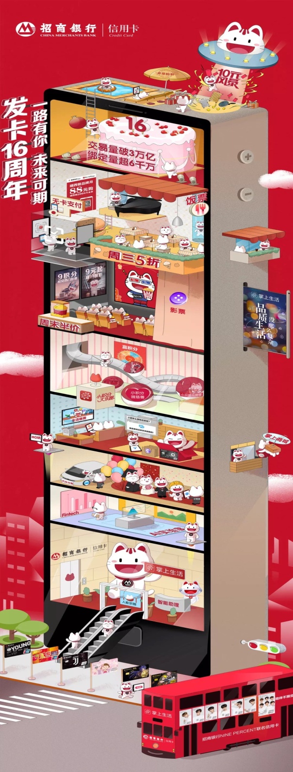 據(jù)悉,圖里這棟手機大廈,承載了招行信用卡和客戶們的共同回憶。各種靚麗的卡片、飯票、影票、旅游活動,承包了客戶們的吃喝玩樂;貼心的智能客服和 AI實驗室,為客戶提供了溫暖的服務(wù);還有客戶們都熟悉的10元風(fēng)暴、水電煤等生活繳費、智能助理、掌上商城、積分禮遇等。