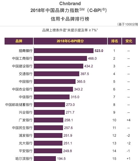 今年4月,2018年中國(guó)品牌力指數(shù)(C-BPI)品牌排名在北京權(quán)威發(fā)布。在一眾信用卡品牌中,招行信用卡以523分的絕對(duì)優(yōu)勢(shì),再次獲得中國(guó)信用卡行業(yè)品牌力第一名。中國(guó)品牌力指數(shù)(C-BPI)實(shí)施8年來(lái),招行信用卡7次問(wèn)鼎第一,幾乎次次穩(wěn)居榜首。業(yè)內(nèi)人士分析,在市場(chǎng)持續(xù)變動(dòng)和白熱化競(jìng)爭(zhēng)環(huán)境下,招行信用卡屢屢摘得品牌力指數(shù)第一,這離不開(kāi)與用戶(hù)的品牌情感溝通及品牌年輕化戰(zhàn)略等因素。