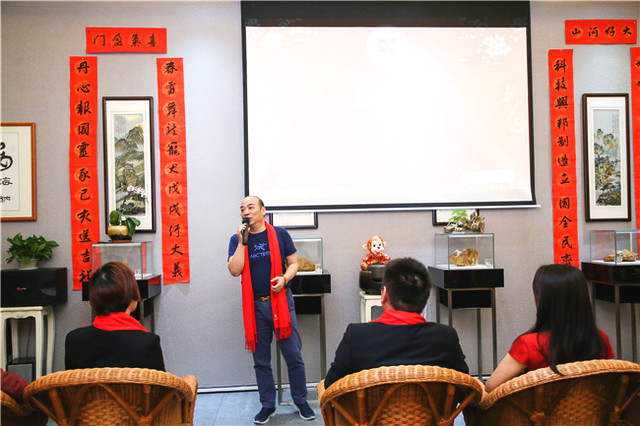 自古書法印章不分家,作品必須蓋印才算完整。本次活動場地提供田黃博物館、希雍天石董事長繆建生為到場嘉賓和校友,受邀分享田黃石科普知識,介紹歷經(jīng)1.8億萬年形成的田黃石種類及特點。 歡聚活動上,田黃博物館特別挑選了一枚“溫、潤、細、膩、凝、潔” 、印面方正碩大,雙龍雕刻立體,栩栩如生的昌化田黃貫斗雙龍印璽,捐贈給文學社。 收到如此珍貴的禮物,求是文學社秘書長樓蓉表示:非常感謝田黃博物館的支持與厚禮,后期將委托機構(gòu)對這塊印石義拍或義賣,所得將以求是文學社和田黃博物館名義,捐贈給公益項目,會讓這一珍貴的禮物,發(fā)揮更多的社會價值。