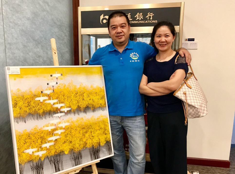 油畫,裝點了布吉支行的網(wǎng)點,為整齊劃一的廳堂增添了別具一格的藝術(shù)氛圍。油畫,也融入到了支行員工活動、客戶活動和精準扶貧活動中。自2017年7月啟動油畫義賣扶貧活動以來,油畫成了客戶、禮坑村和布吉支行之間的一條多彩紐帶。這條紐帶,記錄著一路走來的故事。
