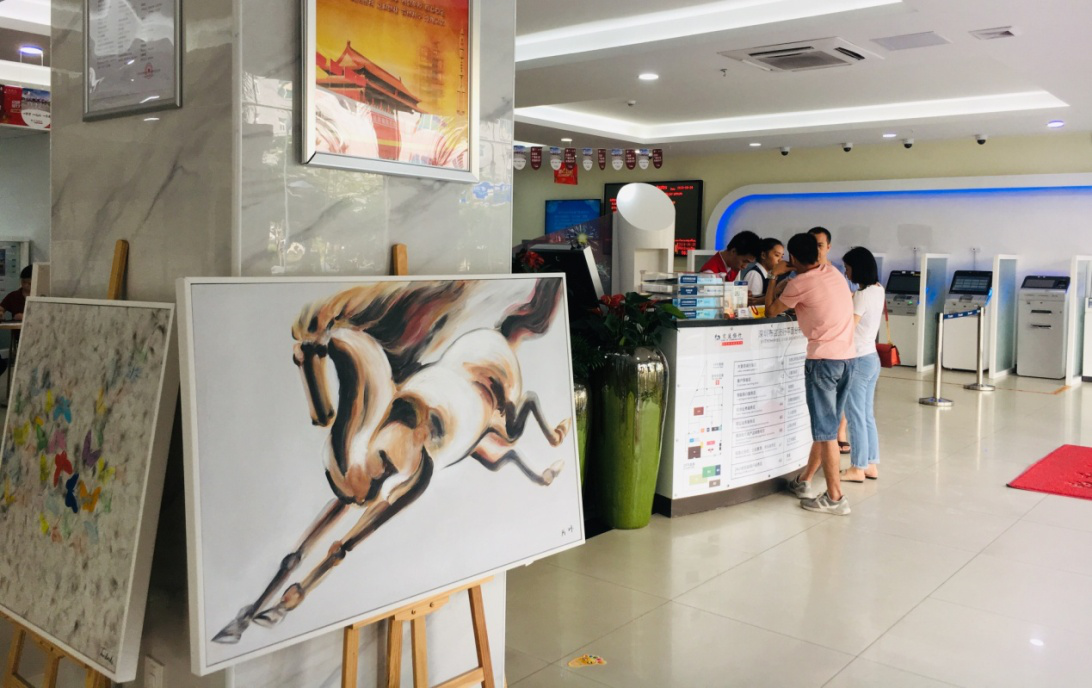 走進交通銀行深圳布吉支行,您的目光一定首先會被陳列廳堂的油畫作品吸引。這些油畫是布吉支行用于精準扶貧的義賣作品,用來幫助河源市紫金縣禮坑村許大爺家庭。支行精準扶貧工作已經(jīng)進入第三個年頭,2019年6月,支行利用啟動基金向畫商重新購置了油畫作品。新添置的油畫作品擺放于支行大廳,結(jié)合總行廳堂一體化改造,支行廳堂呈現(xiàn)出全新面貌。