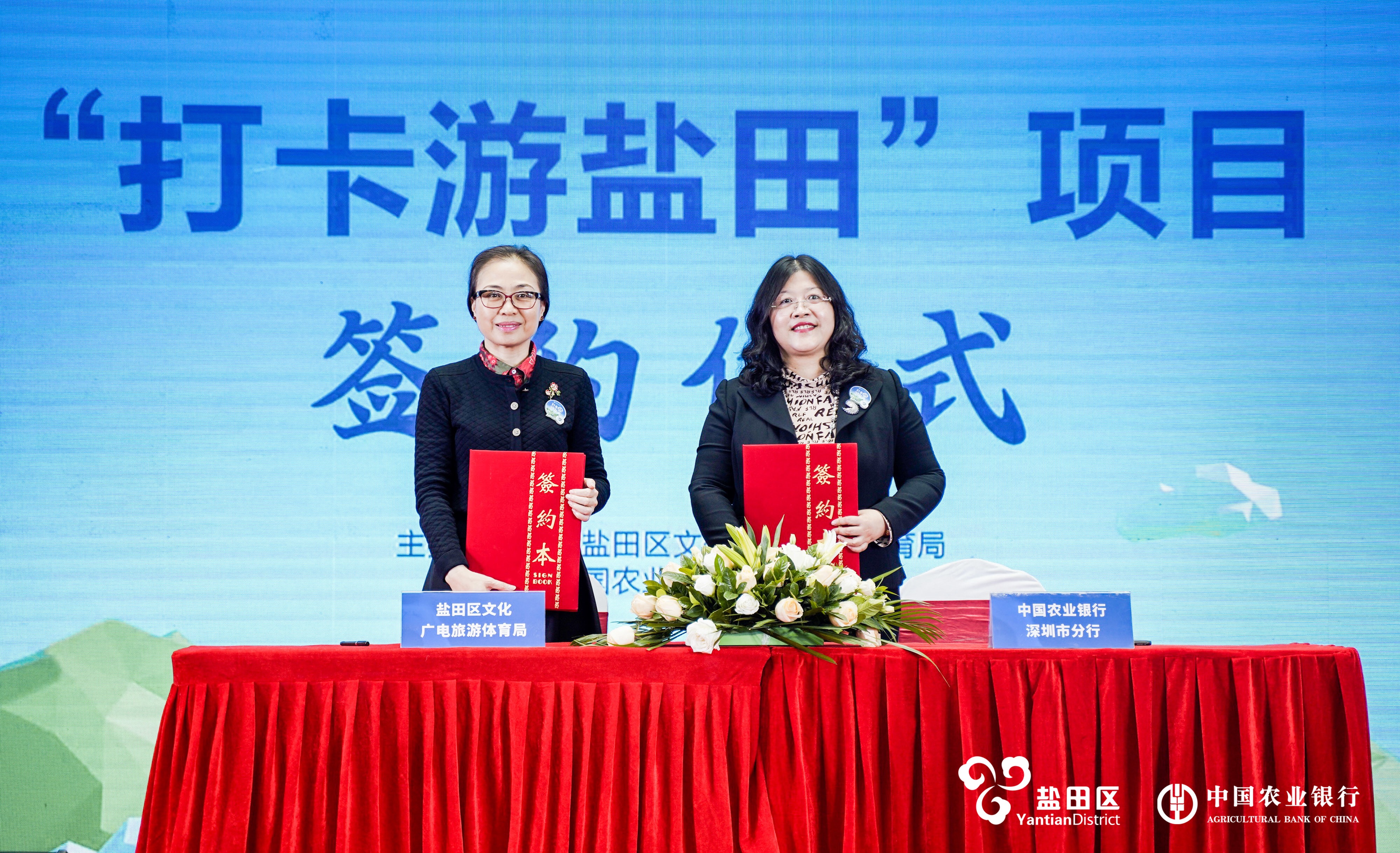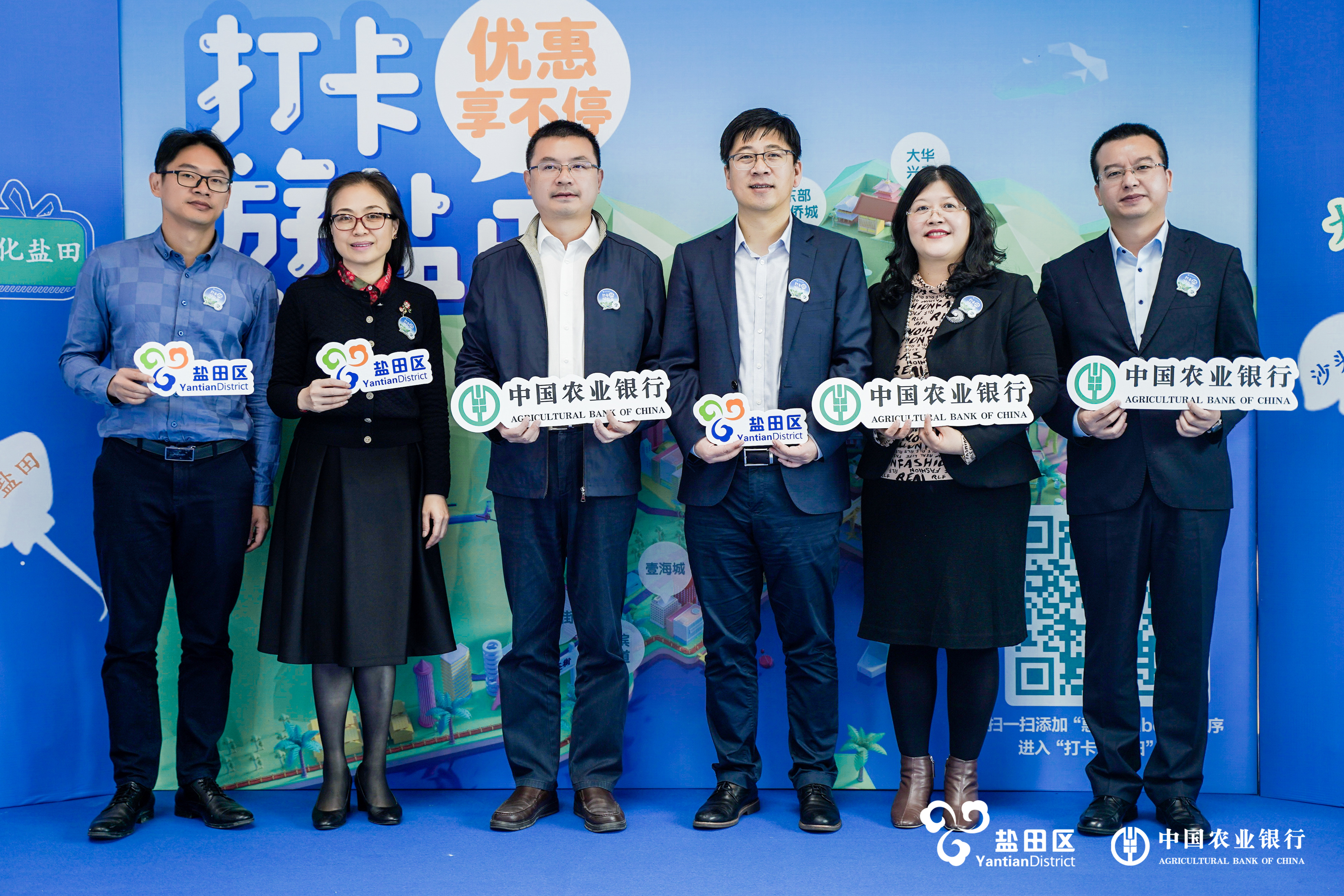 2019年12月17日上午,由深圳市鹽田區(qū)文化廣電旅游體育局主辦,農行深圳分行承辦的鹽田區(qū)第二期“打卡游鹽田”活動發(fā)布會在鹽田ONE MALL商場舉行。鹽田區(qū)副區(qū)長羅毅、鹽田區(qū)文化廣電旅游體育局局長彭潔、鹽田區(qū)文化廣電旅游體育局副局長王智華、農行深圳分行副行長魏秉全、農行深圳分行信用卡中心總經(jīng)理張珂等相關領導出席發(fā)布會。會上,鹽田區(qū)副區(qū)長羅毅、農行深圳分行副行長魏秉全先后做開幕致辭與活動方案,鹽田區(qū)文化廣電旅游體育局局長彭潔、農行深圳分行信用卡中心總經(jīng)理張珂現(xiàn)場簽署了《鹽田區(qū)第二期“打卡游鹽田”活動合作協(xié)議》,宣告活動正式落地。