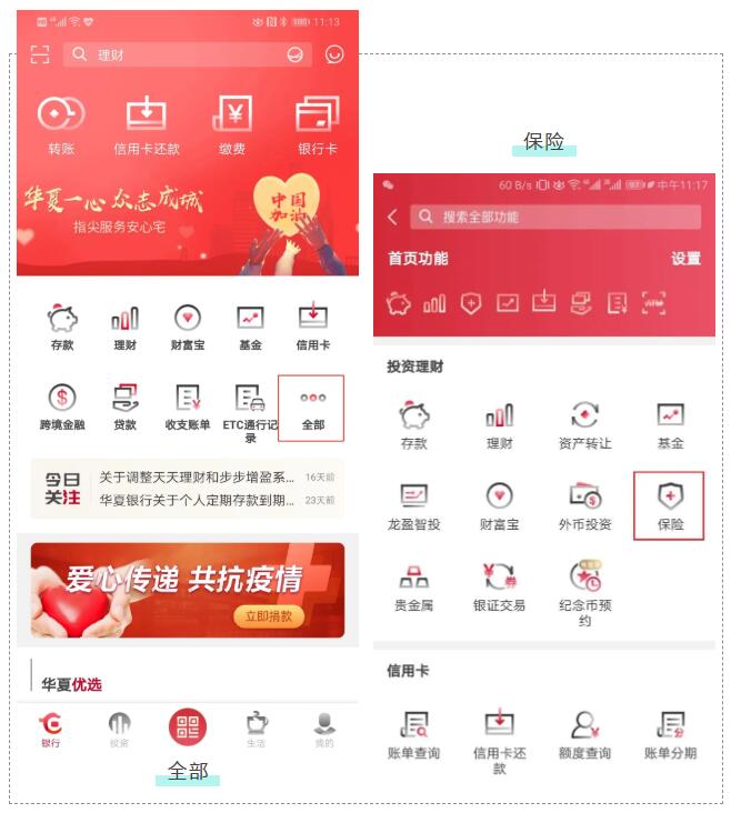 溫馨提示:如果您尚未對(duì)您及您的家庭做保險(xiǎn)配置,在疫情時(shí)期可以通過華夏銀行手機(jī)銀行APP足不出戶配齊保險(xiǎn)保障。您只需要打開華夏銀行手機(jī)銀行,在首頁通過“全部”菜單,進(jìn)入“投資理財(cái)”板塊,點(diǎn)擊“保險(xiǎn)”即可進(jìn)入保險(xiǎn)板塊,按照產(chǎn)品類型、場(chǎng)景選擇您需要的產(chǎn)品進(jìn)行購買。