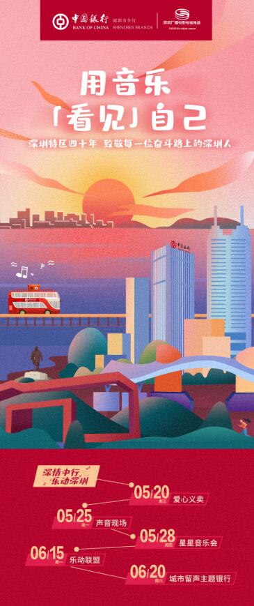 據(jù)了解,“深情中行樂動(dòng)深圳”主題活動(dòng)將持續(xù)至7月,深圳中行將與深圳廣電集團(tuán)將陸續(xù)推出“解鎖深圳成就”H5互動(dòng)、“星星音樂會(huì)”、“聲音現(xiàn)場(chǎng)”、主題TVC、樂動(dòng)聯(lián)盟京東包裹、城市留聲主題銀行等子活動(dòng),與深圳市民共同發(fā)現(xiàn)城市中的溫暖、奮斗中的故事,為深圳特區(qū)四十年唱出贊美的心聲。