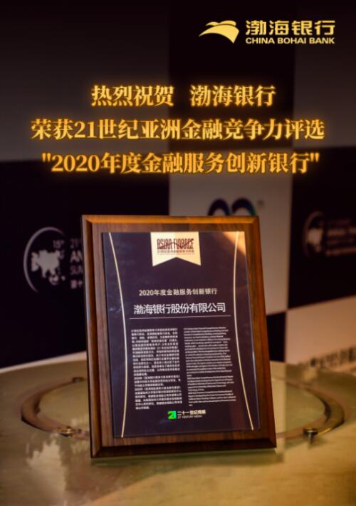 深圳新聞網(wǎng)·見圳客戶端2020年11月17日訊 日前,在由《21世紀(jì)經(jīng)濟(jì)報(bào)道》、21財(cái)經(jīng)APP主辦的2020第十五屆21世紀(jì)亞洲金融年會(huì)上,最年輕的全國性股份制商業(yè)銀行——渤海銀行獲頒“2020年度金融服務(wù)創(chuàng)新銀行獎(jiǎng)”,這是繼去年渤海銀行在“21世紀(jì)亞洲金融競爭力”評(píng)選中首度斬獲“金融科技銀行”稱號(hào)后再度獲行業(yè)權(quán)威媒體認(rèn)可。