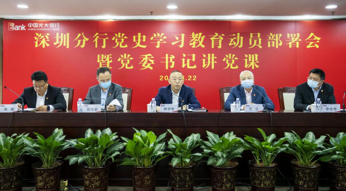 深圳新聞網(wǎng)·見圳客戶端2021年3月23日訊 知其史方能激其志,激其志方能盡其責。昨日,光大銀行深圳分行舉行黨史學習動員部署會暨黨委書記講黨課,學習貫徹習近平總書記在黨史學習教育動員大會上的重要講話精神和李曉鵬董事長集團黨史學習教育動員部署會講話精神。分行黨委書記、行長韓學智全面動員部署黨史學習教育工作,并講《學習中共黨史 牢記使命擔當—中國共產(chǎn)黨從“一大”到“三大”的歷史沿革》專題黨課。分行黨委委員、紀委書記方眾主持會議并對《深圳分行黨委黨史學習教育工作方案》進行了宣講和具體工作部署,分行領(lǐng)導班子成員和全體中層干部共160多人參加會議。