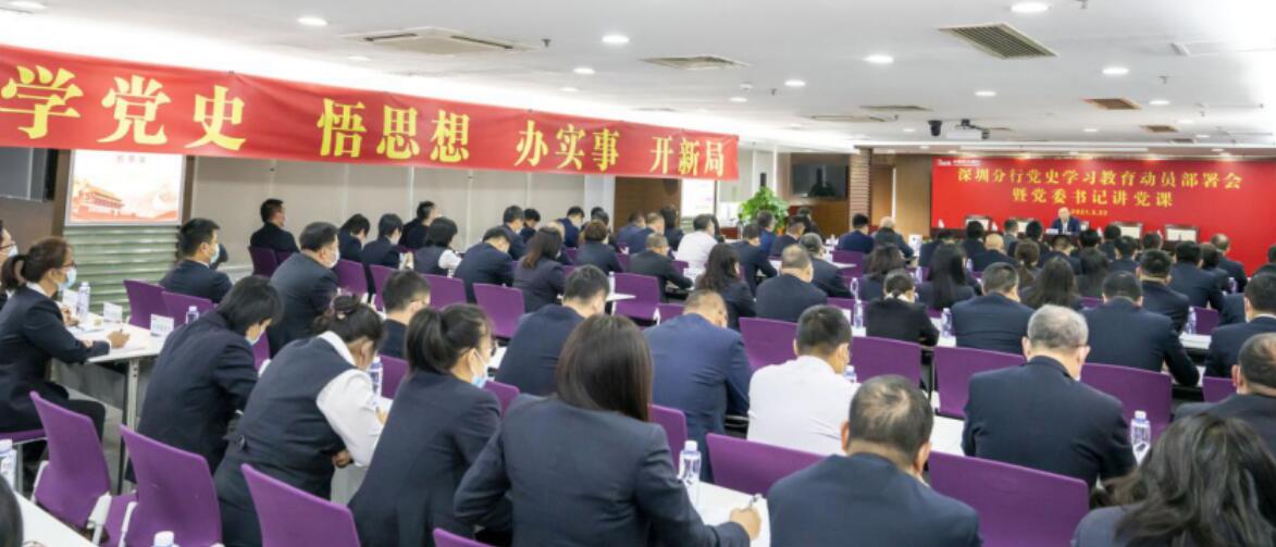 會上,韓學智對分行開展黨史學習教育作了動員部署。他指出,在建黨100周年之際,黨中央組織開展黨史學習教育意義重大、正當其時。他對分行全體員工提出六點要求:一是通過學習進一步傳承紅色基因,堅定道路自信、理論自信、制度自信、文化自信,真正做到學史明理、學史增信、學史崇德、學史力行。二是各黨支部要按照統(tǒng)一部署,迅速行動,扎實開展黨史學習教育,尤其是黨員領(lǐng)導干部在學黨史、講黨史、懂黨史、用黨史方面要發(fā)揮示范帶動作用。三是采取特色鮮明、形式多樣的學習教育方式,提高學習效果。四是通過學習增強為民服務(wù)意識,貫徹好新發(fā)展理念,助力破解經(jīng)營發(fā)展難題,著力服務(wù)實體經(jīng)濟,服務(wù)民生。五是通過學習落實從嚴治黨要求,通過以案促改、從嚴治行,實現(xiàn)強思想、強組織、強隊伍、強作風、強紀律。六是通過學習增強擔當精神,把學習成效轉(zhuǎn)化為工作動力和工作成效,為深圳分行開新局做出積極貢獻,以實績慶祝建黨100周年。