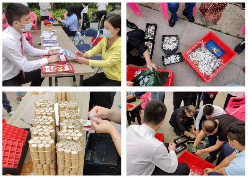 3至4月期間,深圳分行走進(jìn)水榭花都和華海瀾灣小區(qū),開展“硬幣兌換進(jìn)社區(qū)”公益活動(dòng),并向社區(qū)居民宣傳“3.15金融消費(fèi)者權(quán)益”、人民幣圖樣使用等金融知識(shí)。從2017年開始,深圳分行累計(jì)開展“硬幣兌換進(jìn)社區(qū)”活動(dòng)近50次,回收硬幣超過(guò)100萬(wàn)枚,徹底解決居民硬幣積壓的老大難問(wèn)題,是“一切人民為中心”、“急人民之所急,想人民之所想”的集中體現(xiàn)。
