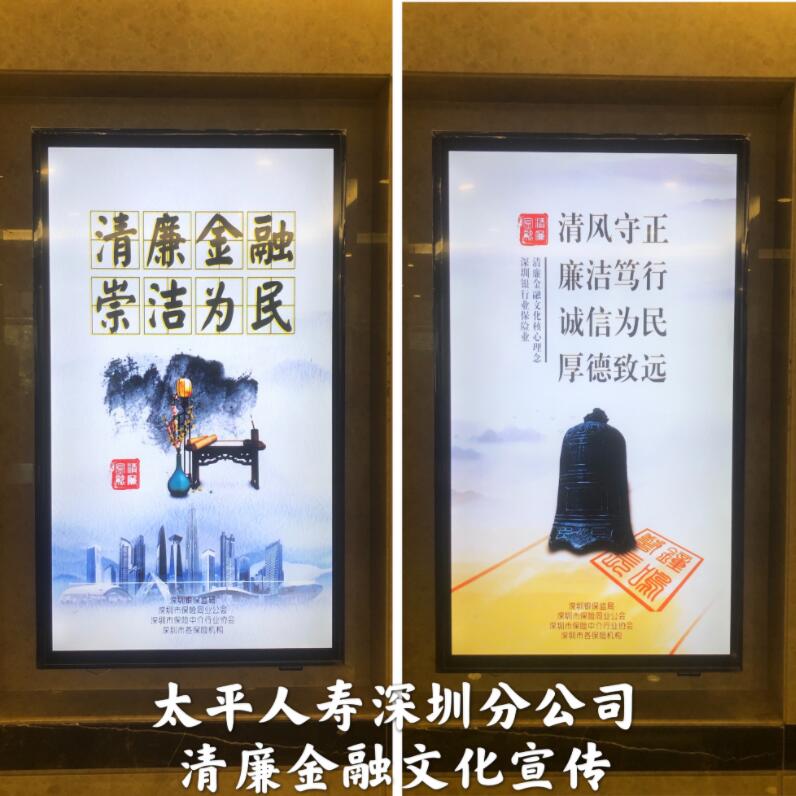 為確?!扒辶幕ㄔO”工作順利開展,太平人壽深圳分公司清廉金融文化建設工作領導小組結(jié)合公司實際部署相關(guān)工作,開展黨章黨規(guī)黨紀、監(jiān)管規(guī)章制度等系統(tǒng)性學習;結(jié)合建黨百年,開展清廉金融文化系列黨課宣講;積極推動公司全員參與“清廉金融文化宣傳教育普及月”線上答題及書畫作品征集活動;制作橫幅和海報在職場進行宣傳,營造風清氣正的企業(yè)氛圍,促使清廉金融文化在公司內(nèi)部蔚然成風。