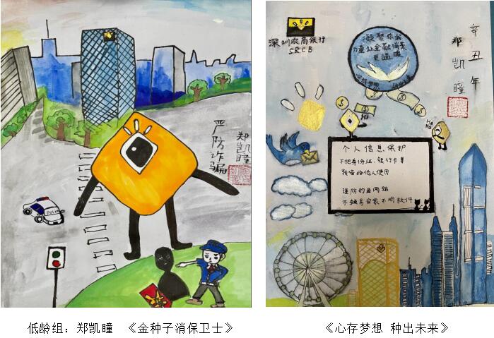 本屆“我是小小繪畫家”消保主題繪畫大賽,圍繞“孩子眼中的消保世界”題材展開,體現(xiàn)孩子對消費者權(quán)益保護、金融風險防范、自我保護能力提升等方面的認識,通過畫筆,描繪孩子眼中的金融消保工作。同時,也是積極落實中國人民銀行深圳市中心支行、深圳銀保監(jiān)局、深圳銀促會組織開展的“金融知識普及月”“金融聯(lián)合教育宣傳月”活動號召,聚焦青少年人群,開展金融知識普及宣教活動。