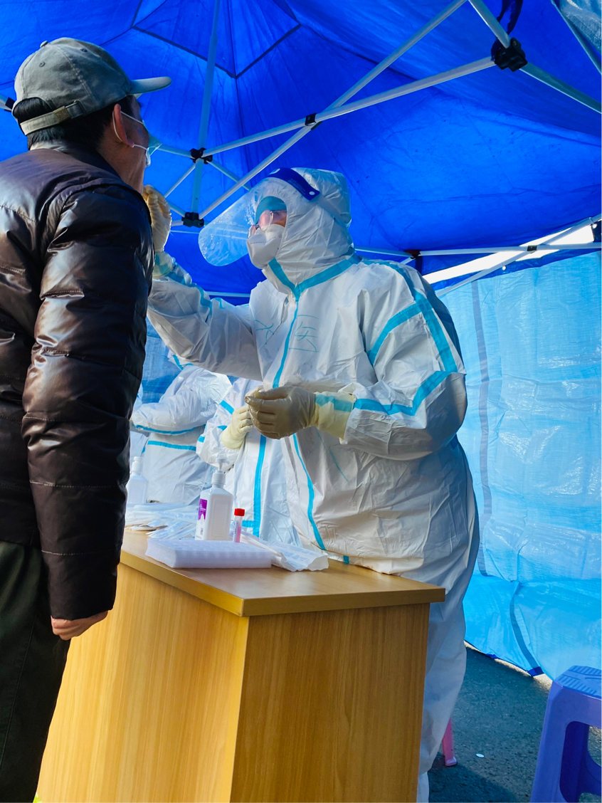從清晨6點到晚上8點,歷經(jīng)14個小時不停不歇,穿上厚重的防護服,連吃飯喝水都有困難,但“太醫(yī)管家”戰(zhàn)疫志愿先鋒隊的小伙伴們嗓門不降、動作不停、節(jié)奏不慢,始終維持著一線檢測工作的高效運轉(zhuǎn),通過扎實的專業(yè)和過硬的技術(shù),全天共完成5個社區(qū)點位8個通道的核酸檢測工作,累計完成3151人次的核酸檢測,其中上門入戶檢測273人次。