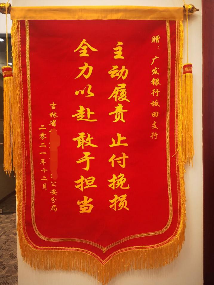 深圳新聞網(wǎng)2022年1月18日訊(記者 朱琳 通訊員 金橋)近日,廣發(fā)銀行深圳分行機(jī)智識(shí)別某公司賬戶涉嫌電信詐騙,成功堵截高達(dá)412萬(wàn)元的涉案資金轉(zhuǎn)移。吉林省某市公安分局向該行授予錦旗,對(duì)該行有效保障人民群眾財(cái)產(chǎn)安全的行為給予了高度肯定。