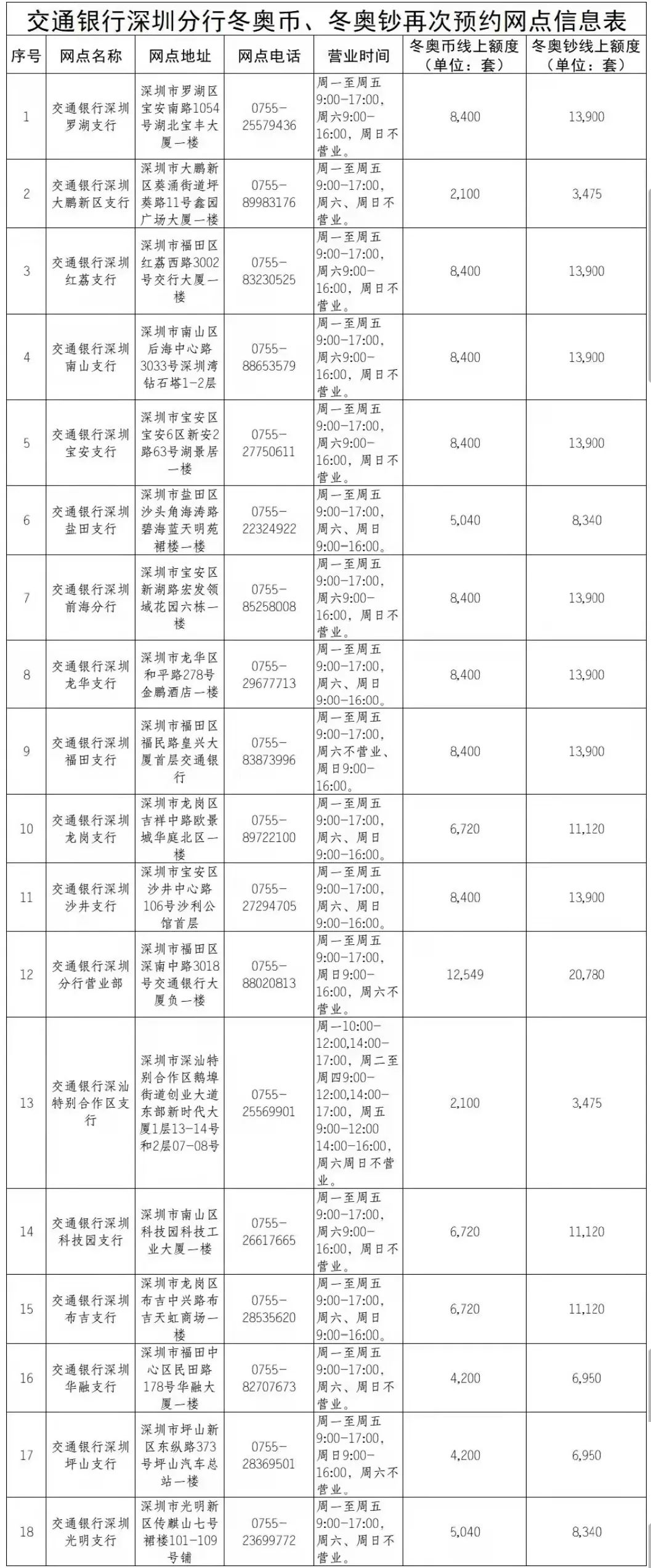 深圳新聞網(wǎng)2022年2月11日訊 (記者 朱琳)根據(jù)中國人民銀行《第24屆冬季奧林匹克運(yùn)動會普通紀(jì)念幣、紀(jì)念鈔再次預(yù)約兌換工作安排》規(guī)定,將對第24屆冬季奧林匹克運(yùn)動會普通紀(jì)念幣、紀(jì)念鈔(以下分別簡稱冬奧幣、冬奧鈔)發(fā)行剩余部分再次開展預(yù)約兌換。交通銀行深圳分行(以下簡稱“深圳交行”)承擔(dān)深圳地區(qū)的部分預(yù)約兌換工作,現(xiàn)將有關(guān)事項(xiàng)通告如下。