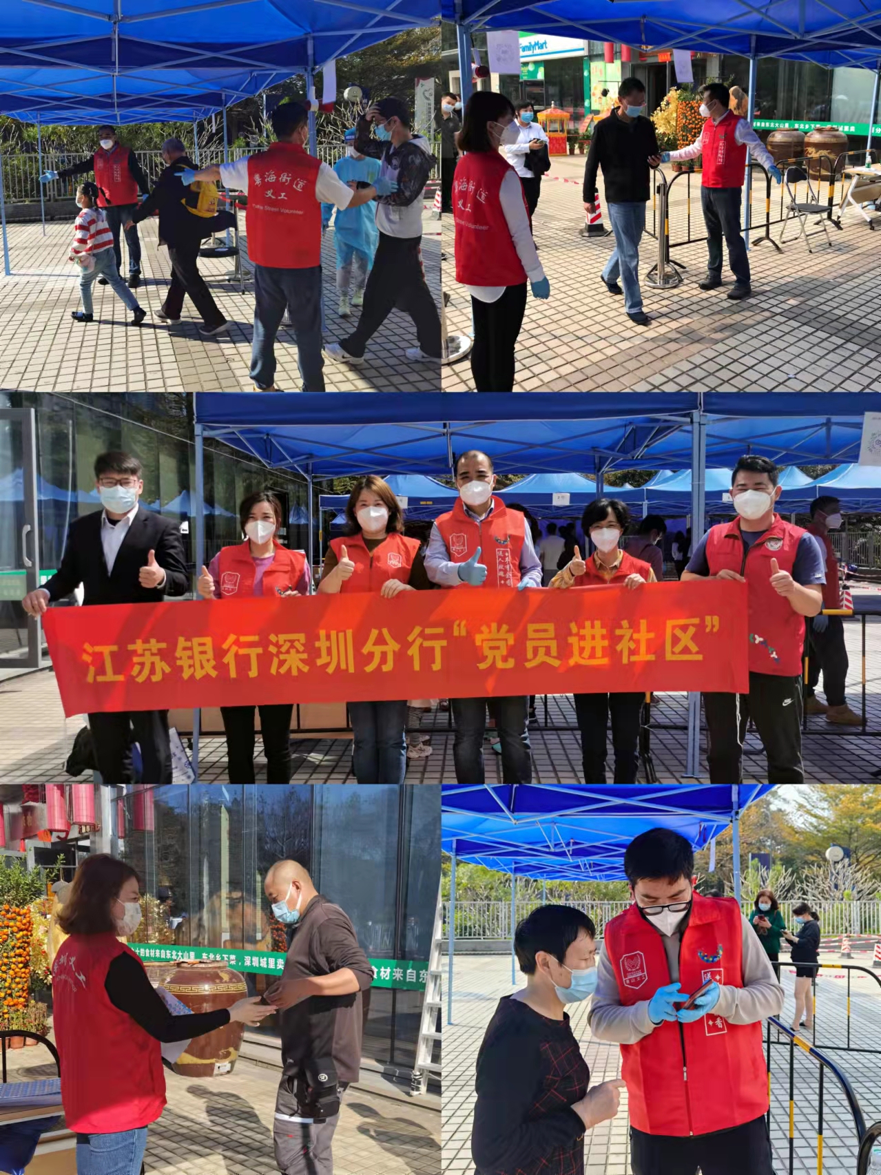 在該行黨委統(tǒng)一部署及有效組織下,江蘇銀行深圳分行營業(yè)部、福田支行、南山支行、前海支行等基層黨組織快速響應(yīng),立即組建起由黨支部書記、支行行長帶頭的志愿先鋒隊。2月中旬起,江蘇銀行深圳分行志愿先鋒隊忙碌在福田海濱社區(qū)、南山蔚藍(lán)海岸社區(qū)、高新區(qū)社區(qū)等多個核酸檢測點,在核酸采樣現(xiàn)場提醒民眾查驗健康碼、協(xié)助秩序維護(hù)、做好防疫宣傳、協(xié)助搬運物資、進(jìn)行核酸引導(dǎo)、解答防疫問題。與社區(qū)醫(yī)護(hù)人員一起奮斗在抗疫第一線,用行動踐行初心,用汗水書寫擔(dān)當(dāng),用責(zé)任與堅守共筑抗疫“紅色防線”。