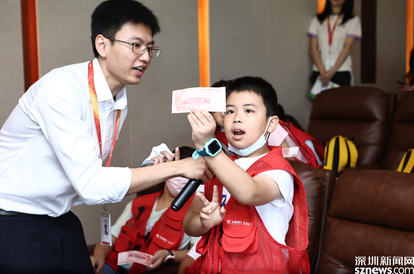 在金融小課堂上“小飛俠”們學(xué)會(huì)如何甄別真假幣、提升自身金融素養(yǎng)(圖源:深圳新聞網(wǎng))