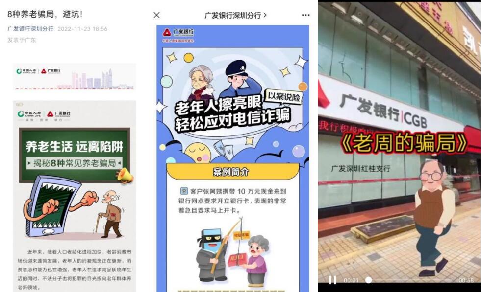 廣發(fā)銀行深圳分行積極運(yùn)用數(shù)字科技與新媒體宣傳相結(jié)合,通過發(fā)動(dòng)全行開展寓教于樂的短視頻大賽方式來宣傳金融知識(shí),提高老年人防范養(yǎng)老詐騙意識(shí);通過分行微信公眾號(hào)發(fā)送防范非法集資、防范養(yǎng)老詐騙等宣傳軟文;加強(qiáng)對(duì)打著科技創(chuàng)新、綠色轉(zhuǎn)型等政策旗號(hào),利用元宇宙、NFT等新概念的新業(yè)態(tài)新形態(tài)等非法集資活動(dòng)進(jìn)行風(fēng)險(xiǎn)提示。