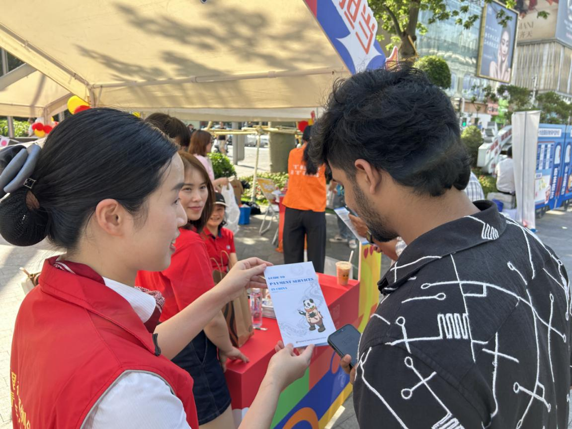 廣發(fā)銀行深圳分行員工為到場(chǎng)的外國(guó)友人送上英文版《外籍來(lái)華人員支付指南》