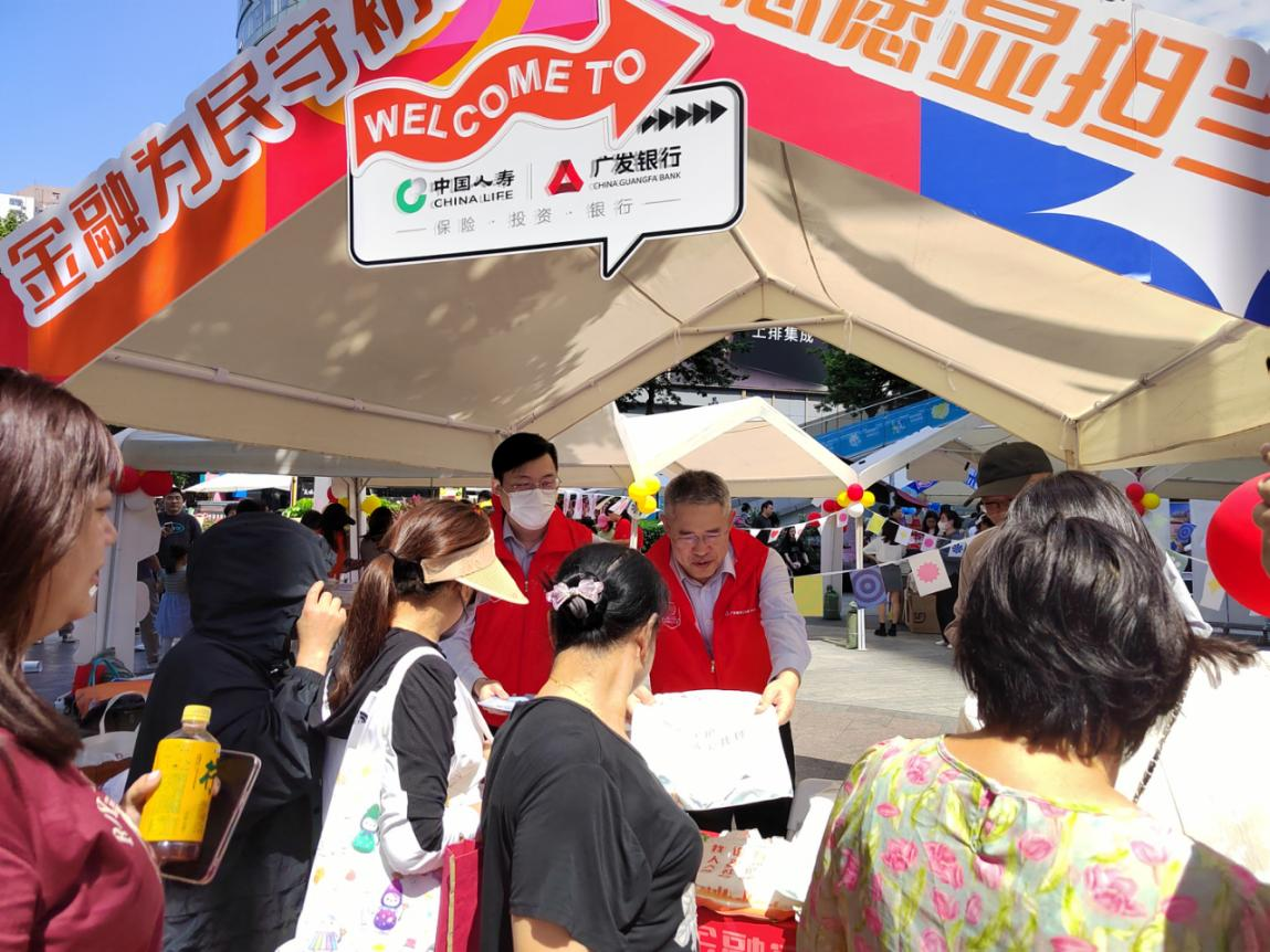 廣發(fā)銀行深圳分行紀(jì)委書(shū)記杜經(jīng)濤向現(xiàn)場(chǎng)群眾發(fā)放宣傳購(gòu)物袋