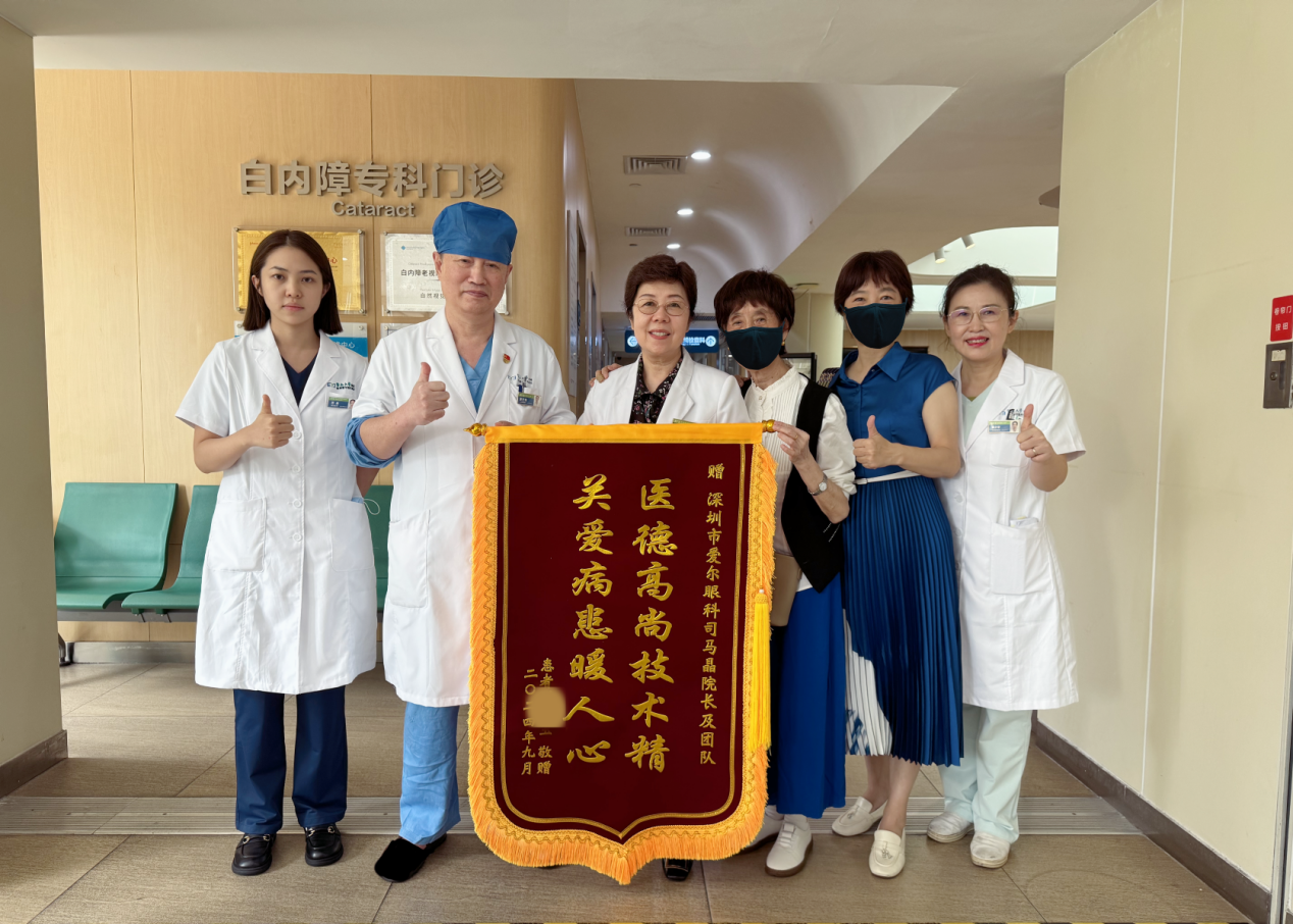 完成手術(shù)的劉奶奶心情無比輕松,坐在輪椅上被推出手術(shù)室時(shí),她向醫(yī)護(hù)人員豎起了大拇指。兩天后,劉奶奶又順利進(jìn)行了另一只眼的手術(shù)。通過飛秒激光輔助白內(nèi)障手術(shù),一次性解決了她的白內(nèi)障、遠(yuǎn)視、散光及老視等多種眼病困擾。術(shù)后,她為醫(yī)護(hù)人員送來錦旗,激動(dòng)地抱著司馬晶教授道謝:“感謝您治好了我的眼睛,我現(xiàn)在看遠(yuǎn)看近都很清楚,真后悔沒有早點(diǎn)做這個(gè)手術(shù)!”