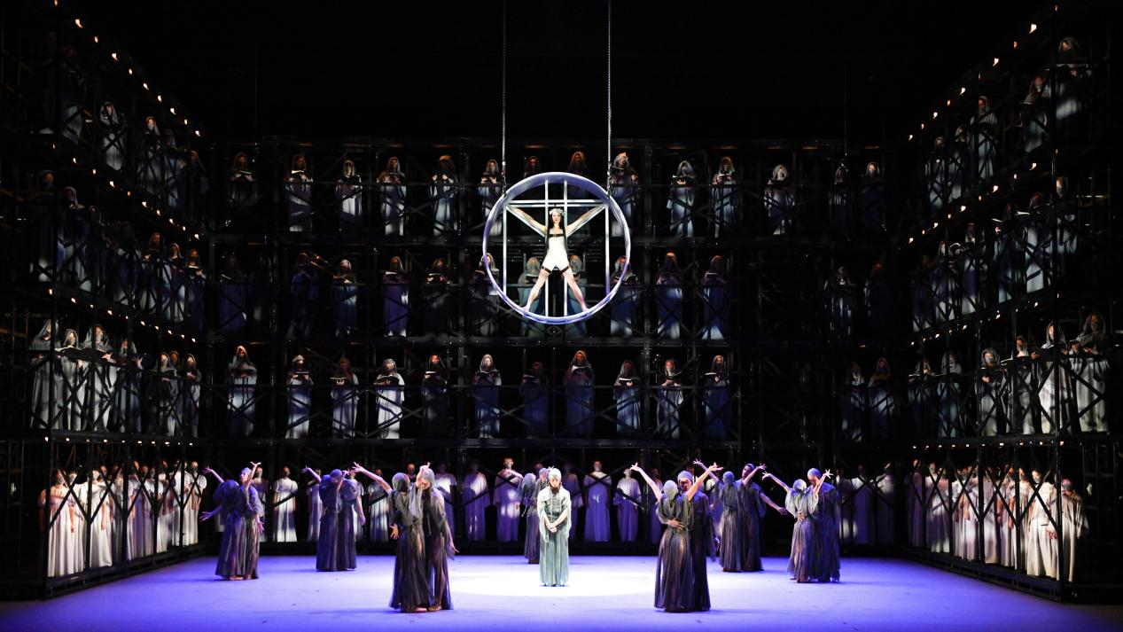 《布蘭詩歌》演出包含《布蘭詩歌》與《最后的歌》,由香港芭蕾舞團(tuán)和香港管弦樂團(tuán)聯(lián)袂呈獻(xiàn)。作品皆取材經(jīng)典藝術(shù)IP,環(huán)繞舞臺(tái)的九米高臺(tái)營造出修道院內(nèi)景,過百位歌唱家現(xiàn)場(chǎng)演唱,場(chǎng)面震撼。