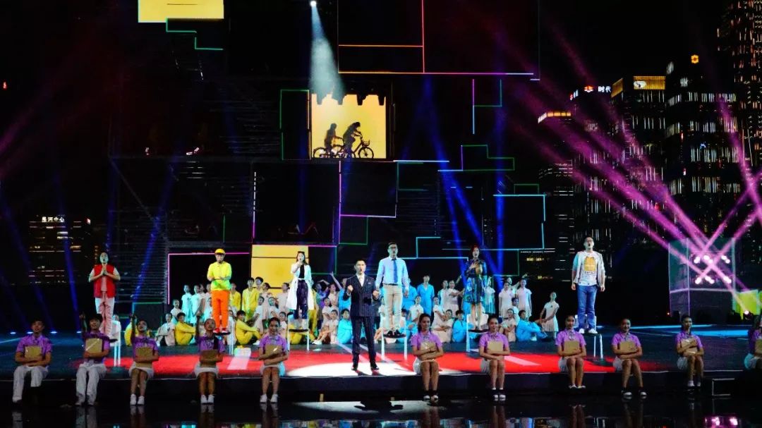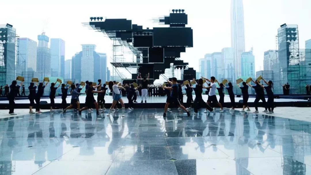 主題曲《新的一天》整首歌以小見(jiàn)大,用年輕上班族的拼搏精神體現(xiàn)深圳人共性,引領(lǐng)時(shí)代進(jìn)步潮流?!? 拒絕空想冒險(xiǎn)/誰(shuí)不渴望明天/有夢(mèng)就要實(shí)現(xiàn) ”,交織的夢(mèng)想成就了深圳?!? 新的一天就在眼前/我的命運(yùn)我要自己改變 ”,改革開(kāi)放賦予了這個(gè)時(shí)代勇敢堅(jiān)持的精神。為了排演這個(gè)節(jié)目,導(dǎo)演卓依·馬可尼利和全體演員歷經(jīng)了一個(gè)月的排練,克服了演出場(chǎng)地露天的高溫,在整個(gè)節(jié)目近五分鐘的時(shí)長(zhǎng)里,展現(xiàn)了新時(shí)代青年對(duì)于工作的拼勁與堅(jiān)韌、活力和激情,彰顯了剛?cè)嵯酀?jì)、自強(qiáng)不息的深圳精神。